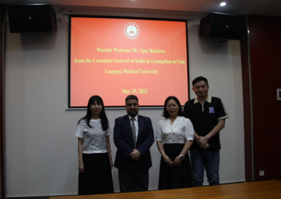 2023年5月29日,印度共和国驻广州总领事馆领事AJAY KACHROO先生访问我校。国际教育学院张海英院长、杨海波副院长、梁步敏副院长及学生科相关教师在国教院会议室与其开展座谈。
